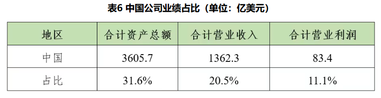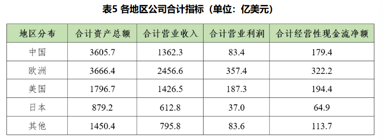 除中國以外,其他地區公司合計資產總額均有不同程度的增長。在整體營業利潤下滑的情況下,歐洲公司合計營業利潤增長8.7%,體現了較強的盈利能力。