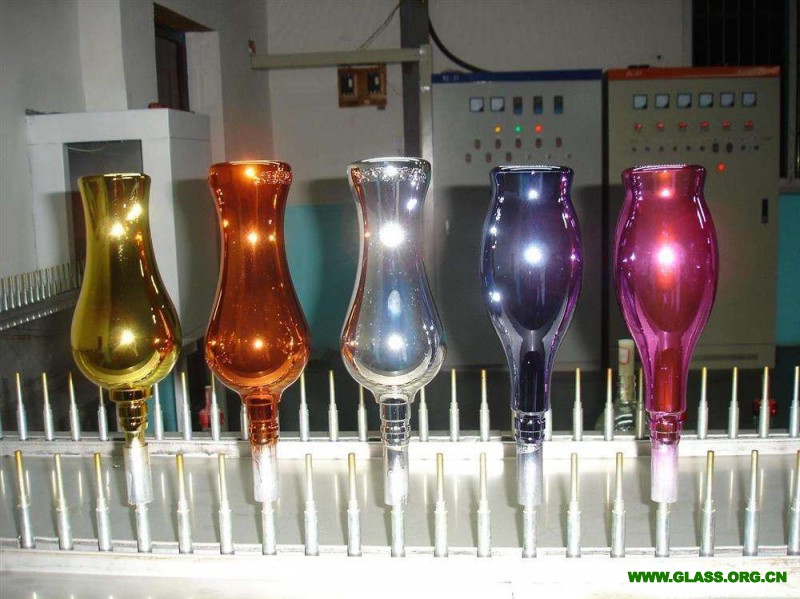 烤花酒瓶的制造工藝是將塑料貼花直接貼在吹制好的玻璃制品上,由傳送帶送入烘烤窯中,經升溫帶、高溫帶、降溫帶烘烤后,即可制成帶有精美彩色圖案的玻璃制品。該工藝與模具壓制圖案工藝結合,可獲得具有立體彩色圖案的玻璃制品。