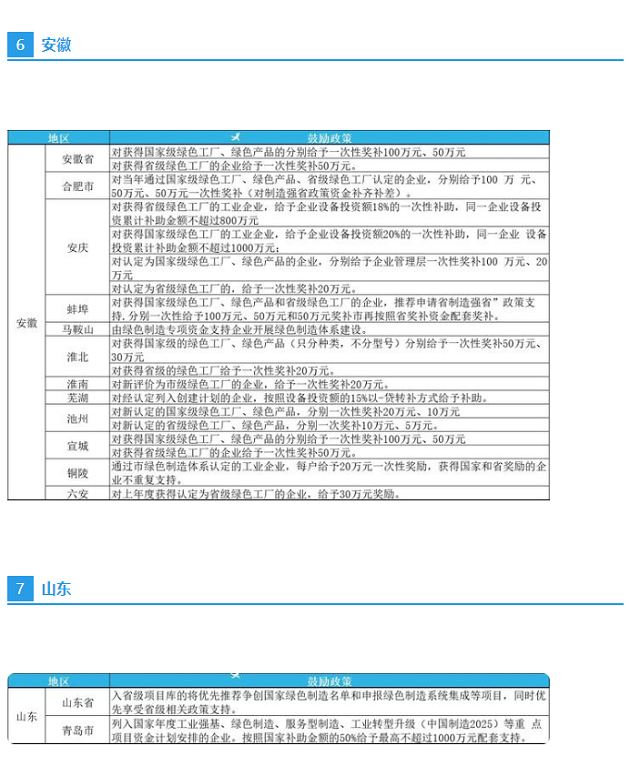 對首次獲得國家級、省級綠色制造名單(綠色工業園區、綠色工廠、綠色供應鏈)認定的企業,分別給予100萬元、80萬元獎勵。對獲得國家級、省級綠色設計產品認定的企業,每種產品分別給予10萬元、8萬元獎勵,最高分別不超過100萬元、80萬元。企業同時獲得國家級、省級綠色制造名單認定的按照“就高不重復”原則進行獎勵。